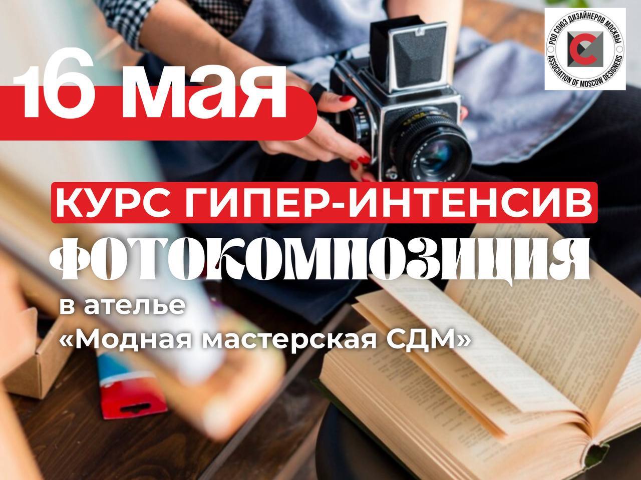 16 мая, в 16:00 ч., в пятницу, в Ателье «Модная Мастерская СДМ» начинает свою работу платный курс «Гипер-интенсив ФОТОКОМПОЗИЦИЯ» при Союзе Дизайнеров Москвы. По адресу: Москва, ул. Артюхиной 21а.