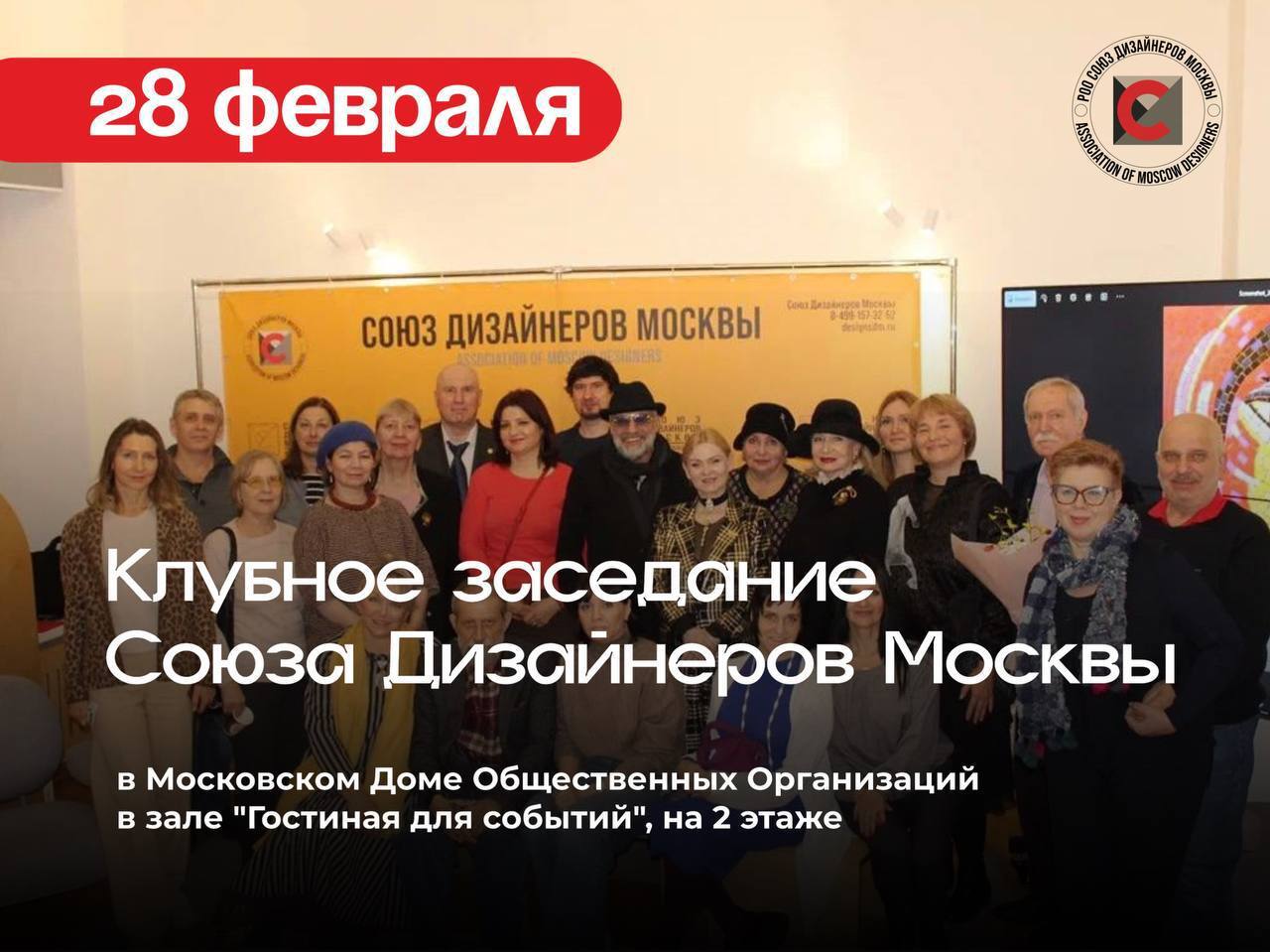 28 февраля 2026, в субботу, в 11:00 часов, приглашаем вас на Клубное заседание Союза Дизайнеров Москвы, в Московский Дом Общественных Организаций по адресу: Москва, ул. Коровий Вал д. 3, стр. 5 в