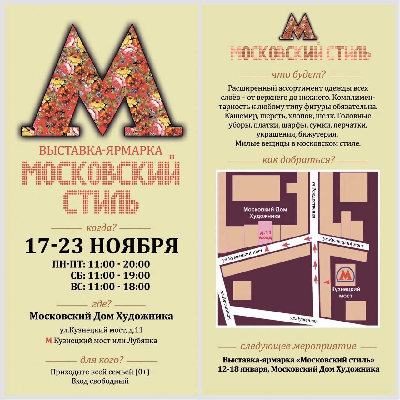 Выставка-ярмарка «Московский стиль» пройдет с 17-23 ноября.